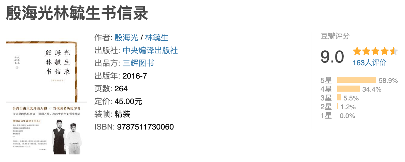 这本书记录了殷海光与学生林毓生近十年的书信来往,直至殷先生在一九六九年九月十六日因胃癌去世,年仅四十九岁。二者虽然是师生关系,但亦师亦友,书信里更像是朋辈之间的学术交流。